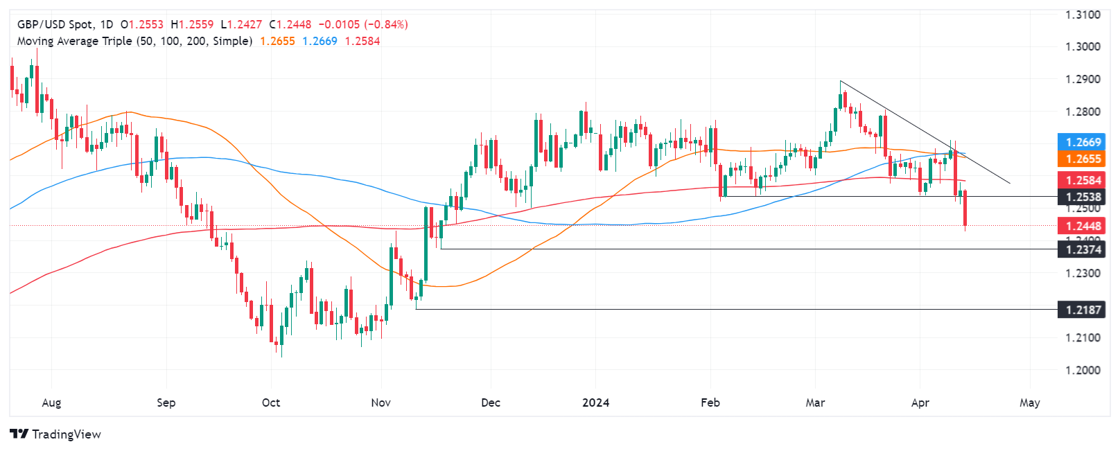 คู่ GBP/USD ร่วงลงอย่างรวดเร็ว โดยได้รับอิทธิพลจากการเคลื่อนไหวไปสู่สินทรัพย์ที่ปลอดภัยยิ่งขึ้นและการแข็งค่าของเงินดอลลาร์สหรัฐ การวิเคราะห์ทางเทคนิคบ่งชี้ถึงการเปลี่ยนแปลงไปสู่แดนลบหลังจากตกลงต่ำกว่าค่าเฉลี่ยเคลื่อนที่ 200 วัน เป้าหมายการฟื้นตัวรวมถึงการฟื้นตัวที่ราคา 1.2500 โดยมีแนวต้านที่ DMA 200 วัน