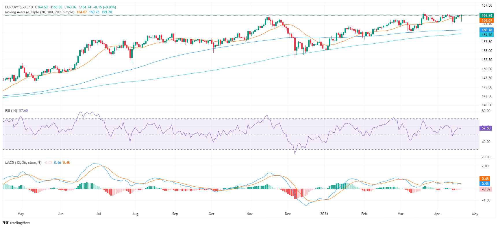 คู่ EUR/JPY อยู่เหนือเส้น SMA 20,100 และ 200 วัน ซึ่งแสดงให้เห็นถึงรูปแบบขาขึ้นที่แข็งแกร่งในมุมมองที่กว้างขึ้น แสดงให้เห็นว่าทั้งคู่ได้แสดงความยืดหยุ่นในการรักษาโมเมนตัมขาขึ้นทั้งจากมุมมองระยะสั้นและระยะยาว ในวันศุกร์