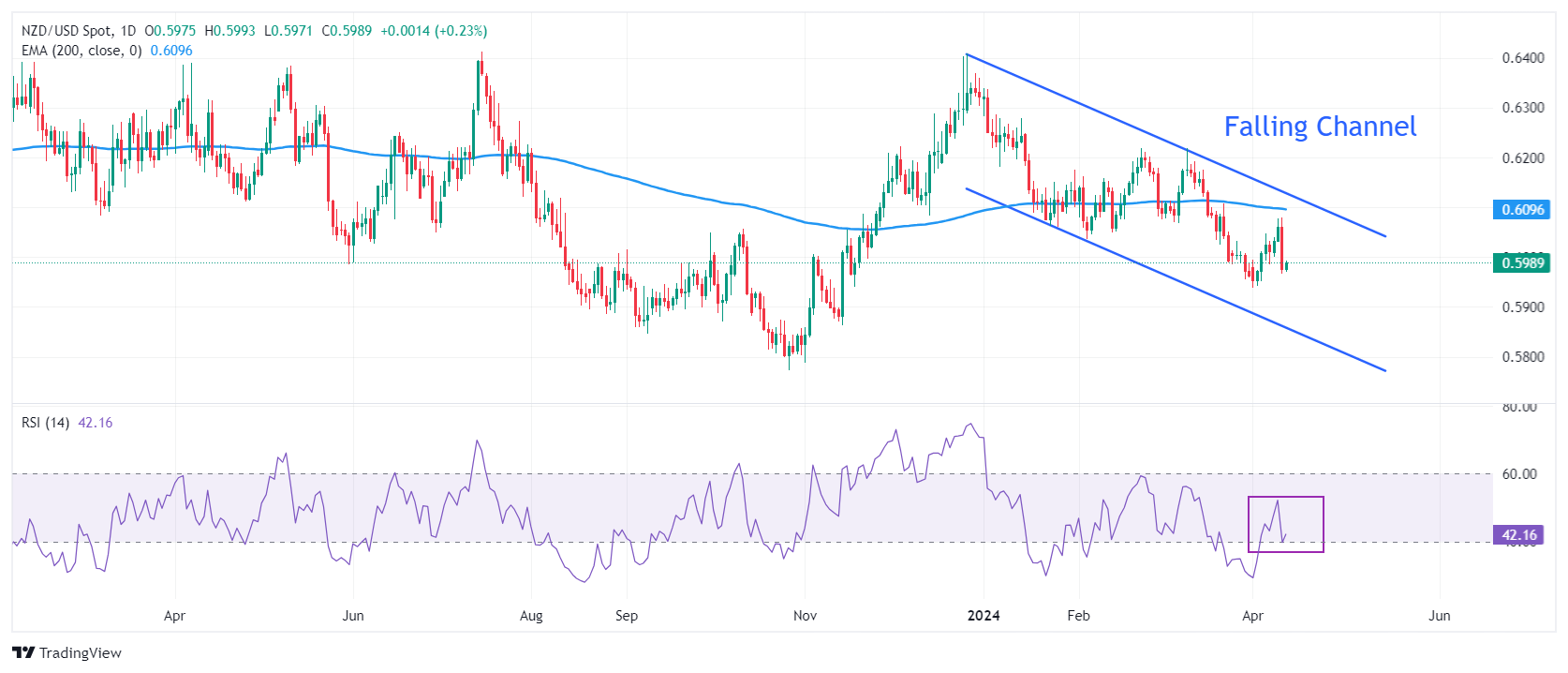 คู่ NZD/USD ลดลงต่ำกว่า ราคา 0.6000 เนื่องจากดอลลาร์สหรัฐแข็งค่าขึ้นหลังจากการเปิดเผยข้อมูลเงินเฟ้อของสหรัฐฯ ที่ร้อนแรง นักลงทุนมองว่าเฟดจะเริ่มปรับลดอัตราดอกเบี้ยตั้งแต่เดือนกันยายน ซึ่งก่อนหน้านี้คาดการณ์ไว้ตั้งแต่เดือนมิถุนายน ส่วนทาง RBNZ ได้ให้คําแนะนําหลังจากรักษา OCR ให้คงที่ที่ 5.5%