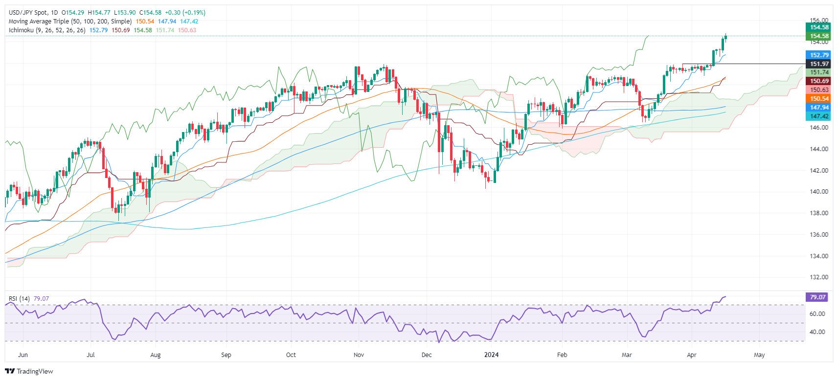 คู่ USD/JPY อาจผลักดันอัตราแลกเปลี่ยนให้ท้าทายไปที่ราคา 155.00 จุดต่อไปจะอยู่ที่ราคา 155.78 ตามด้วยระดับสูงสุดของรอบล่าสุดที่ราคา 160.32
