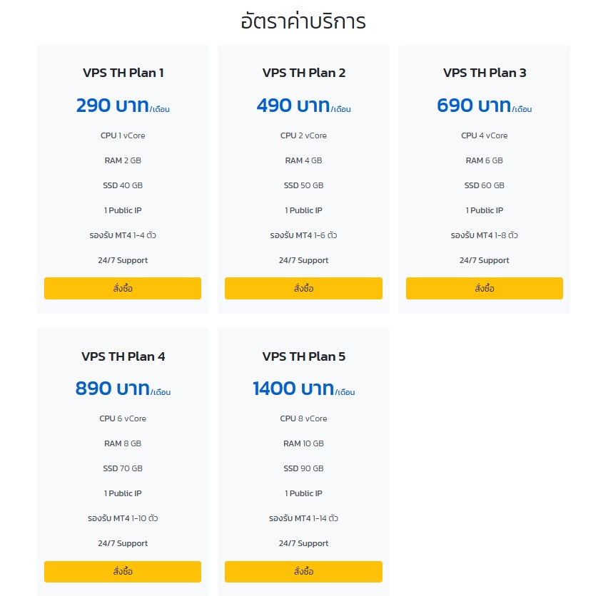 VPS TH Plan 5 ราคา 1400 บาท/เดือน สามารถรองรับ MT4 1-14 ตัว มีเจ้าหน้าที่ 24/7 Support